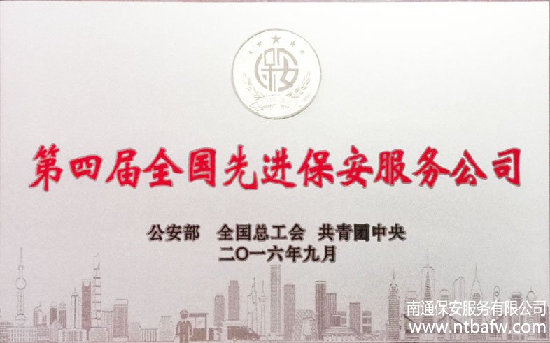 第四屆全國(guó)先進(jìn)保安公司——南通市保安服務(wù)有限公司